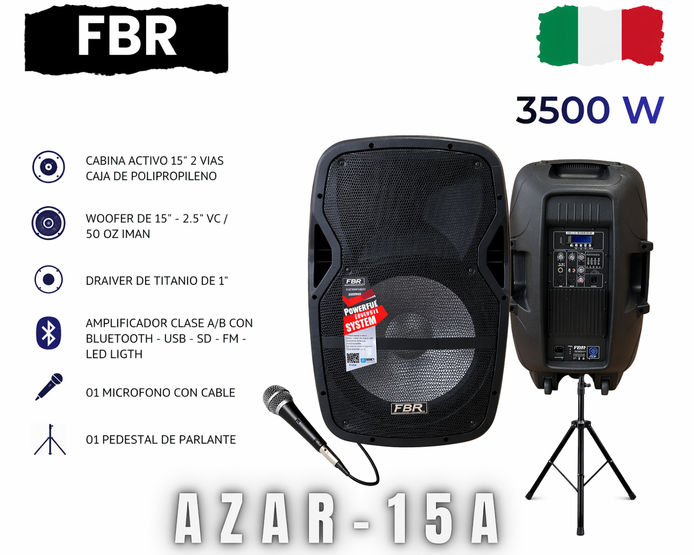 FBR Parlante Activo 3500W AZAR-15A Bluetooth + Micrófono