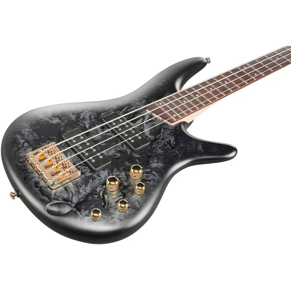 El mástil de 5 piezas de arce y nogal proporciona claridad tonal y un ataque superior.
