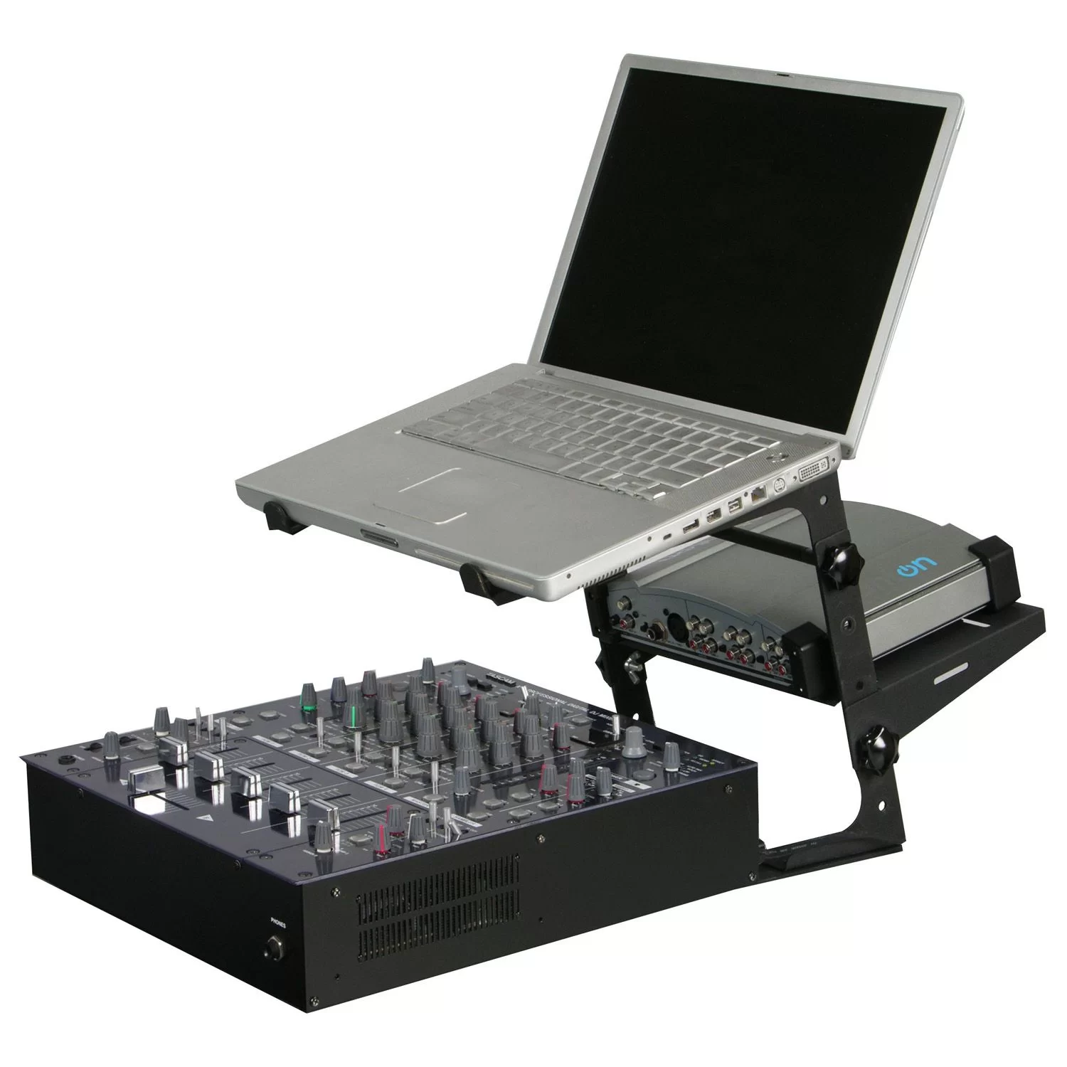 El accesorio L STAND TRAY no solo se conecta a nuestros diversos modelos L STAND y L STAND M, sino también a la mayoría de los soportes para portátiles similares del mercado. Proporciona espacio adicional para colocar los accesorios de su computadora portátil, equipos de DJ como las interfaces Serato Scratch y Traktor Scratch, discos duros u otros elementos esenciales del equipo compacto.