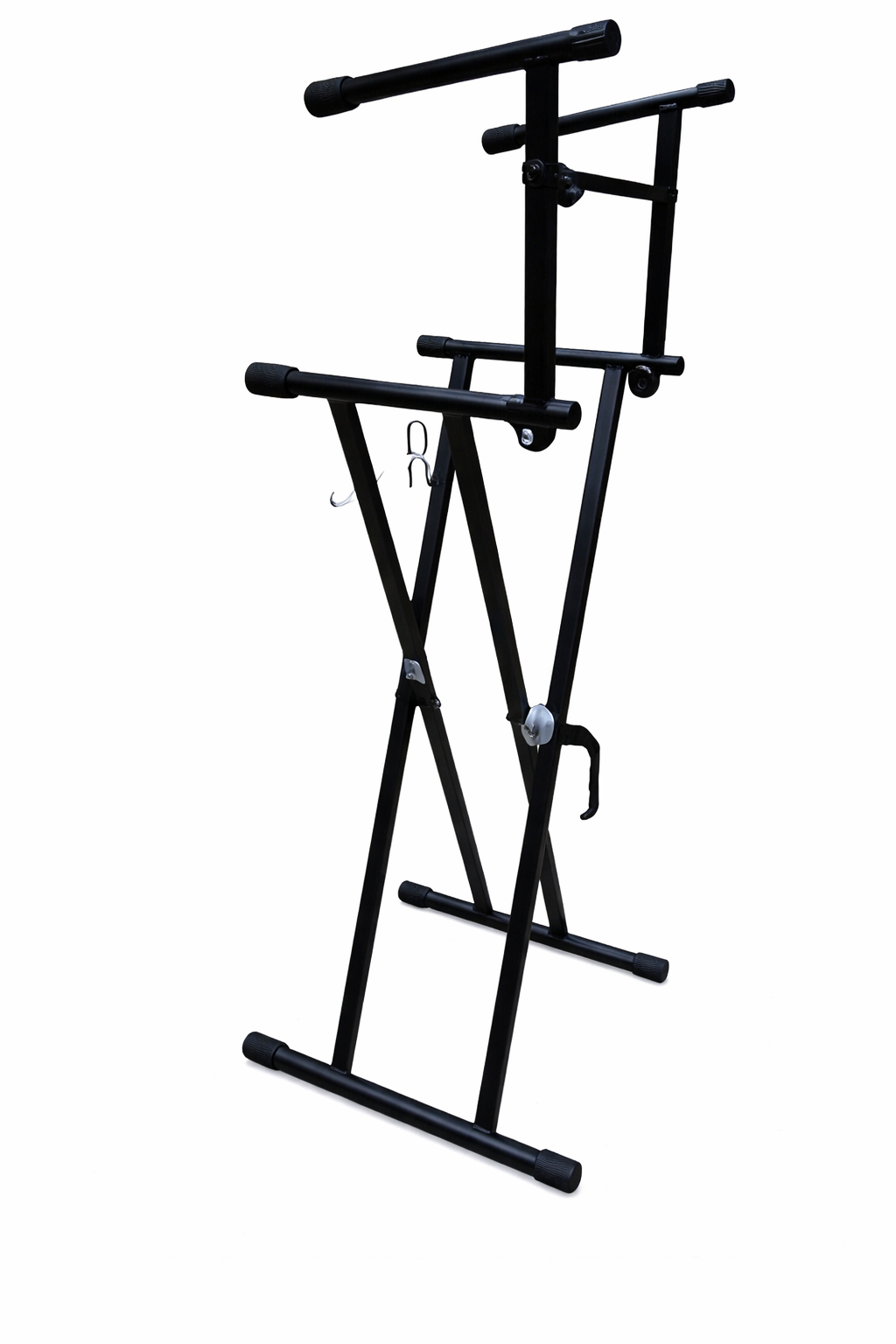 Optimiza tu espacio y mejora tu rendimiento con este pedestal doble para teclado de 2 pisos. Diseñado para ofrecer máxima estabilidad, permite colocar dos teclados de forma segura y cómoda en cualquier entorno.