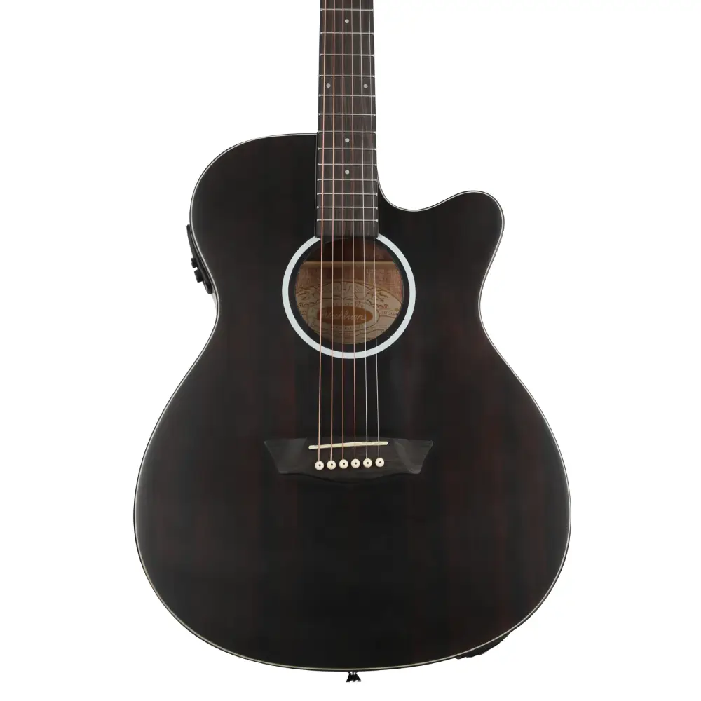 La Washburn DFEACE-U es una guitarra electroacústica de cuerdas de metal que ofrece un sonido equilibrado y potente, con un cuerpo dreadnought con cutaway que brinda gran proyección acústica y facilita el acceso a los trastes altos, una tapa bien construida que optimiza la resonancia y claridad tonal, un sistema de preamplificación integrado que permite controlar volumen y ecualización al conectarla a amplificadores o sistemas de sonido, un mástil cómodo y bien perfilado que facilita una ejecución fluida en toda la escala, una acción ajustada que aporta confort sin perder dinámica, un rendimiento confiable para ensayos, grabaciones y presentaciones en vivo, y una estética cuidada que refuerza su excelente relación calidad-precio dentro de las guitarras electroacústicas Washburn.